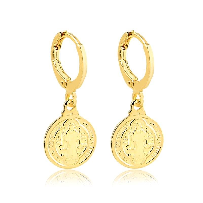 BRINCO DE ARGOLA COM MEDALHA DE SÃO BENTO FOLHEADO A OURO 18K