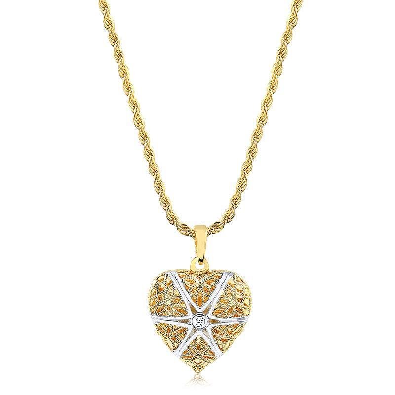 O Colar Coração Relicário é uma semijoia folheada a ouro 18K com corrente cordão baiano de 45 cm, espessura 2mm e coração relicário de aproximadamente 2,5 cm x 2,5 cm e aplicação de ródio. Possui fecho lagosta e é uma opção elegante e sofisticada para guardar uma foto ou objeto de valor sentimental. Perfeito para presentear ou uso pessoal.