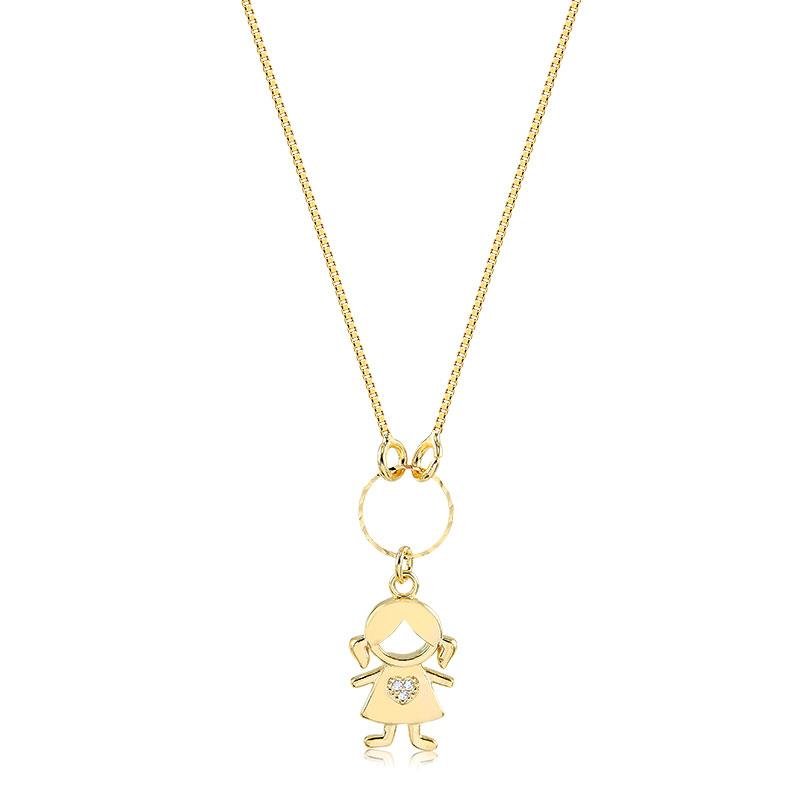 COLAR ACESSÓRIO COM MENINA FOLHEADO A OURO 18K : 01010642 / : 4g / 4 Facebook X Pinterest WhatsApp : - + : OK : Dimensões aproximadasComprimento: 45cm Extensor: 4cm Pingente: 3cm Fecho redondo : Dimensões aproximadasComprimento: 45cm Extensor: 4cm Pingente: 3cm Fecho redondo × : 1x R$ 59,90 : R$ 59,90 × : COLEÇÕES AMOR DE MÃE
