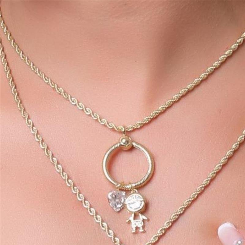 COLAR COM ACESSÓRIO QUE ABRE E PINGENTE DE MENINO FOLHEADO A OURO 18K
