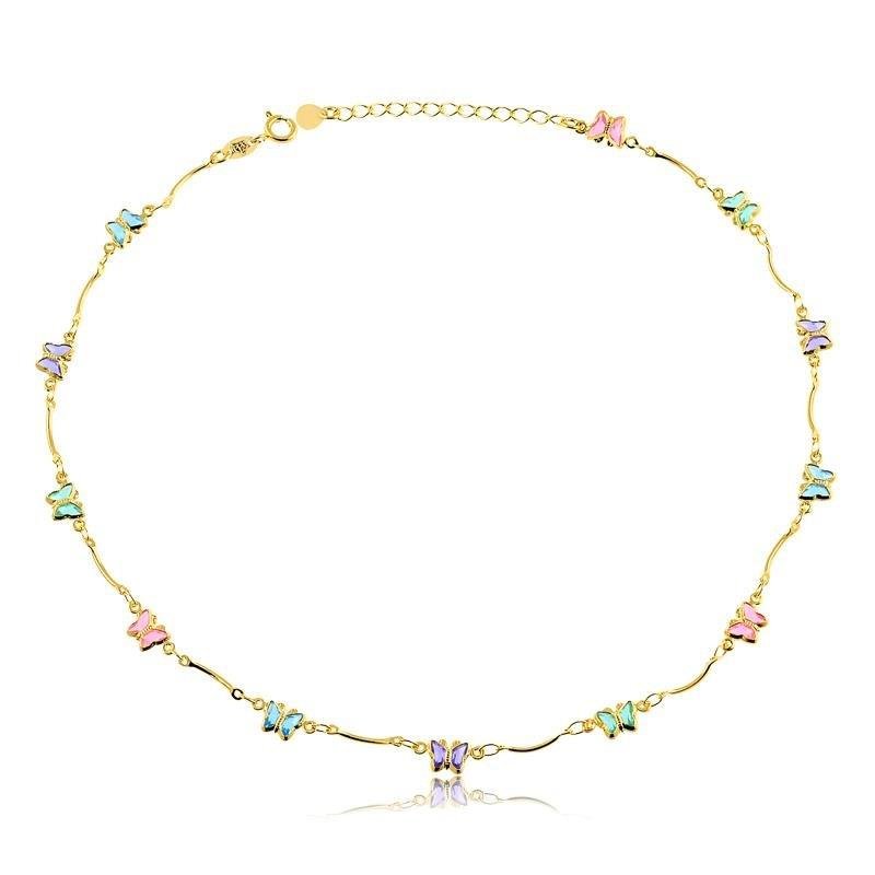 COLAR INFANTIL DE BORBOLETAS COLORIDAS FOLHEADO A OURO 18K : 07010011 / : 3.4g / 1 Facebook X Pinterest WhatsApp : - + : OK : Dimensões aproximadasComprimento: 29cm Extensor: 4cm Borboleta: 6mmPedra: zircônias coloridas Fecho redondo : Dimensões aproximadasComprimento: 29cm Extensor: 4cm Borboleta: 6mmPedra: zircônias coloridas Fecho redondo × : 1x R$ 49,90 : R$ 49,90 ×