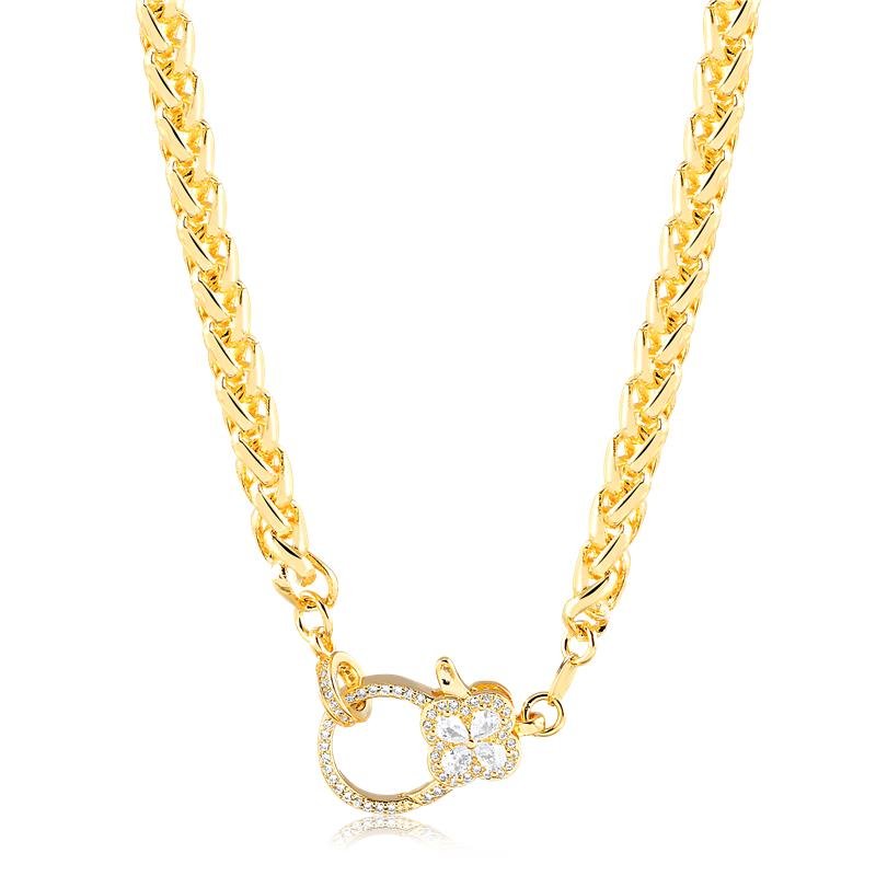 Apresentamos o elegante Colar Malha Figa 45cm com Fecho Cravejado Folheado a Ouro 18K, especialmente projetado para atender ao público de lojistas e revendedoras. Esta peça exclusiva combina moda e tradição, com o icônico símbolo de figa que representa proteção e boa sorte. O colar possui uma malha delicada e um fecho cravejado, adicionando brilho e glamour ao visual. Feito com cuidado e folheado a ouro 18K, é uma escolha refinada que atrairá seus clientes em busca de acessórios sofisticados e com significado. Ofereça esta joia única em sua coleção para encantar e atender às necessidades de seus clientes lojistas e revendedoras.