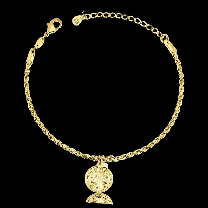 PULSEIRA COM SÃO BENTO E PONTO DE LUZ FOLHEADA A OURO 18K